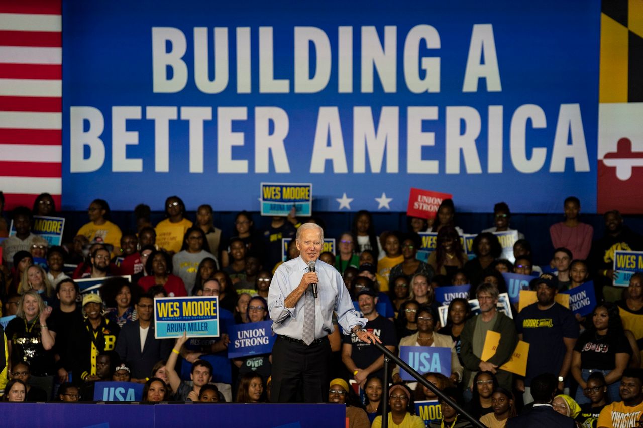 為民主黨在全美各地助選的拜登總統在投票日前一天於馬里蘭州發表講話。圖片來源:Dominick Sokotoff/Zuma Press眾議院預算委員會主席約翰·亞穆思(肯塔基州民主黨人)表示,民主黨在中期選舉中的優勢更多與墮胎權和民主制度受威脅等議題相關。