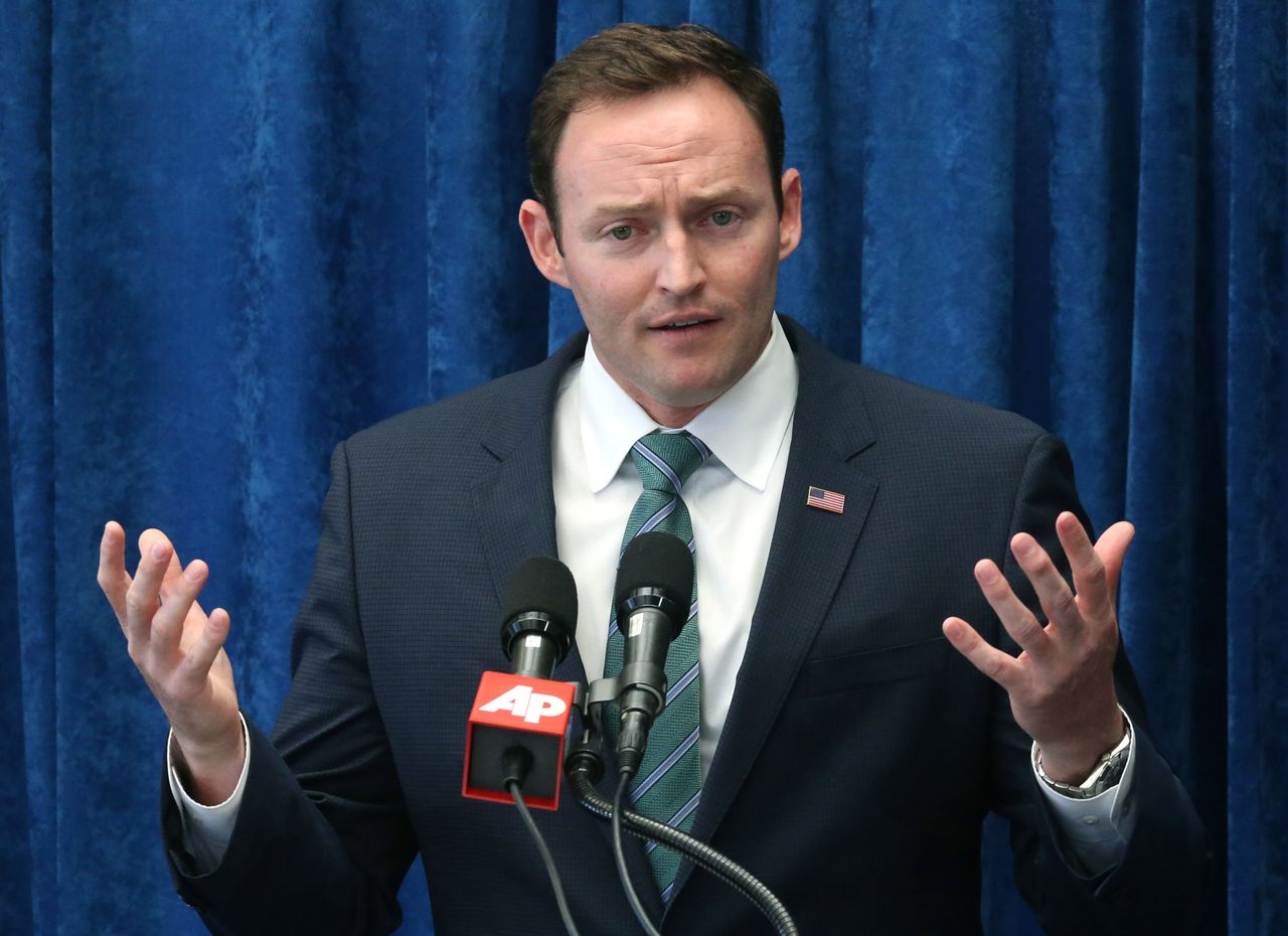 肖克先生曾被視為共和黨新星。圖片來源:塞斯·珀爾曼/美聯社2009年,27歲的肖克宣誓就任伊利諾伊州共和黨眾議員。他一度被視為政治新星,後捲入腐敗醜聞。
