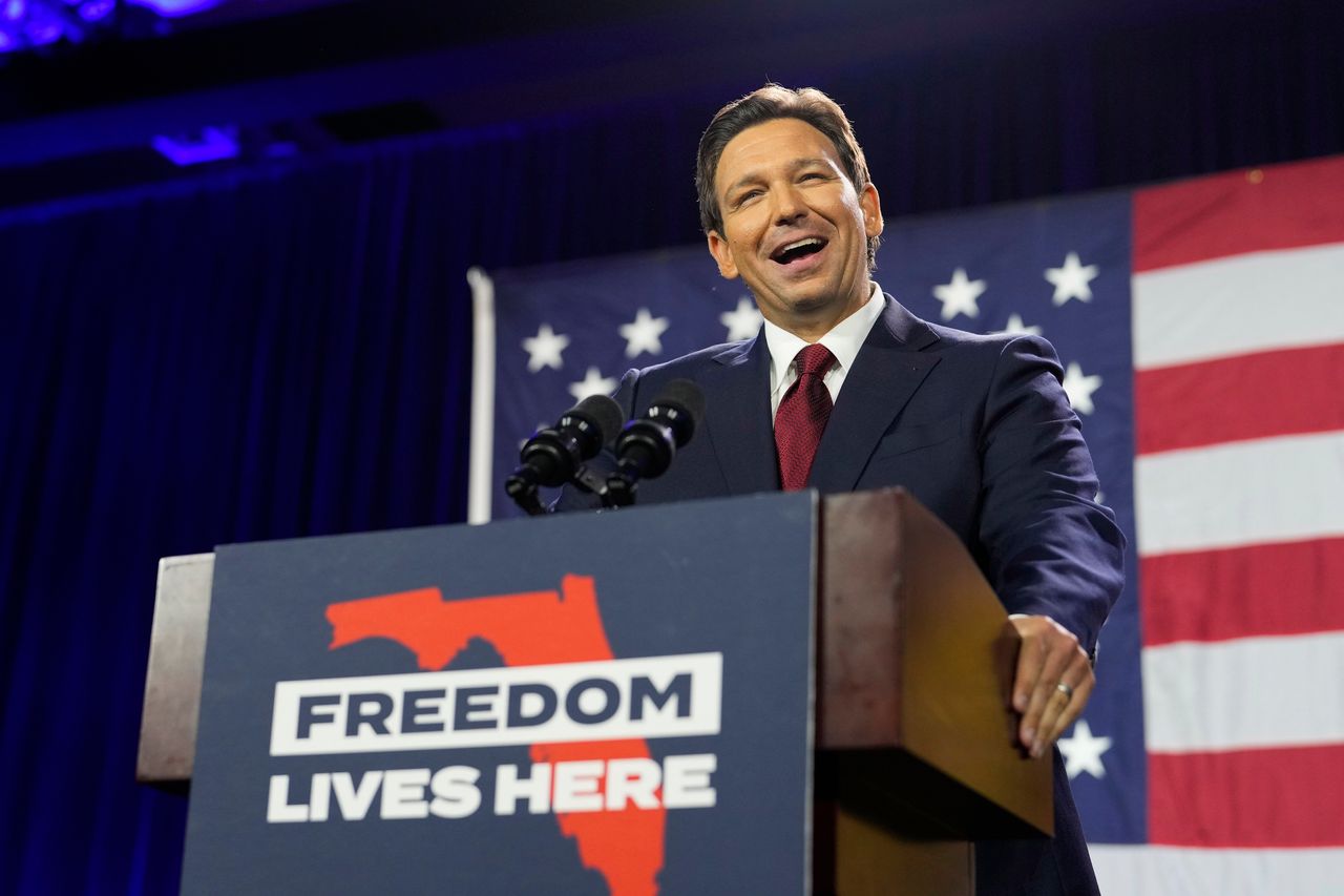 11月8日,佛羅里達州州長羅恩·德桑蒂斯在坦帕市向支持者發表講話。照片:麗貝卡·布萊克威爾/美聯社刊登於2022年11月11日印刷版,標題為’本週的紅色‘浪潮’’。