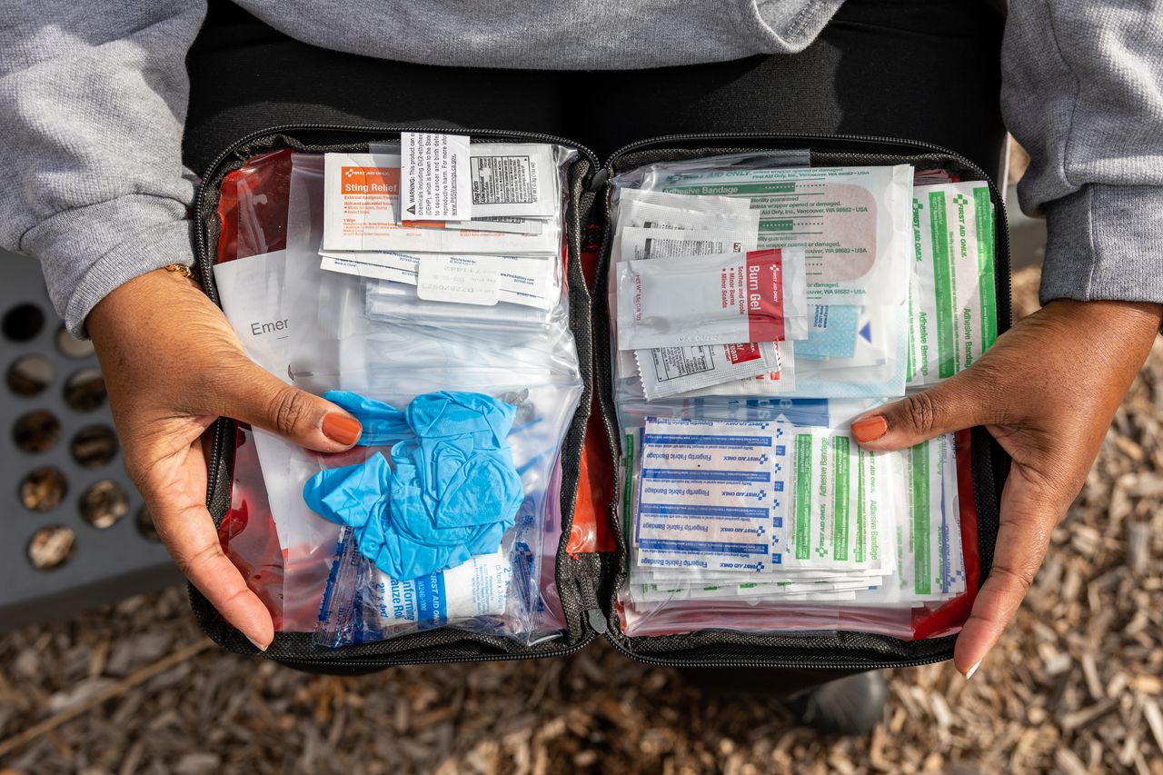參加培訓的大約60名孩子帶着裝滿繃帶、紗布和眼罩的急救包回家了。