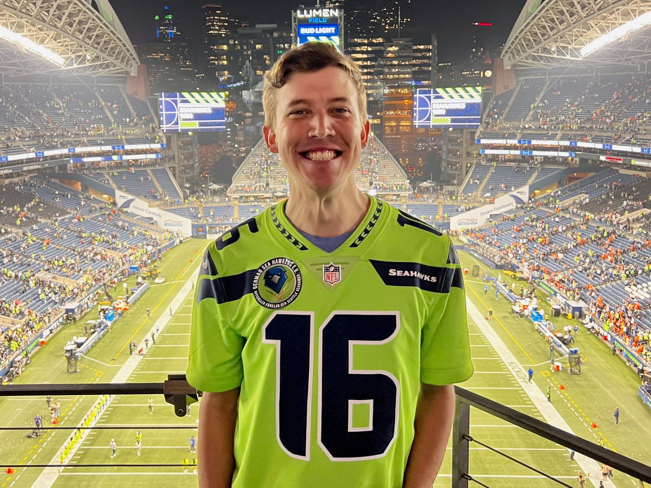 德國球迷他對海鷹隊的熱愛如此之深,以至於九月時從斯圖加特飛越近5200英里來到西雅圖,親歷球隊賽季揭幕戰的盛況。