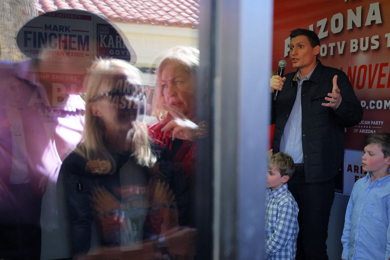 亞利桑那州共和黨參議員候選人布萊克·馬斯特斯曾支持2020年大選舞弊的虛假指控,在獨立選民中落後對手超30個百分點。圖片來源:布萊恩·斯奈德/路透社選舉結果再次引發貫穿多場選戰的經典辯論:究竟應該動員核心支持者投票(通常意味着推行意識形態鮮明的政策),還是爭取中間派選民更為明智。