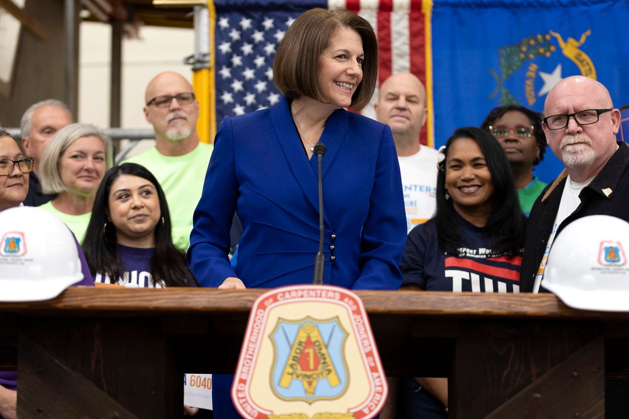 內華達州民主黨參議員凱瑟琳·科爾特斯·馬斯托週日於拉斯維加斯記者會上慶祝勝選。圖片來源:Ellen Schmidt/Associated Press內華達州選舉結果公佈後,科爾特斯·馬斯托在推特發文"感謝你,內華達!",參議院多數黨領袖舒默稱此次選舉結果是"民主黨的勝利與正名"。