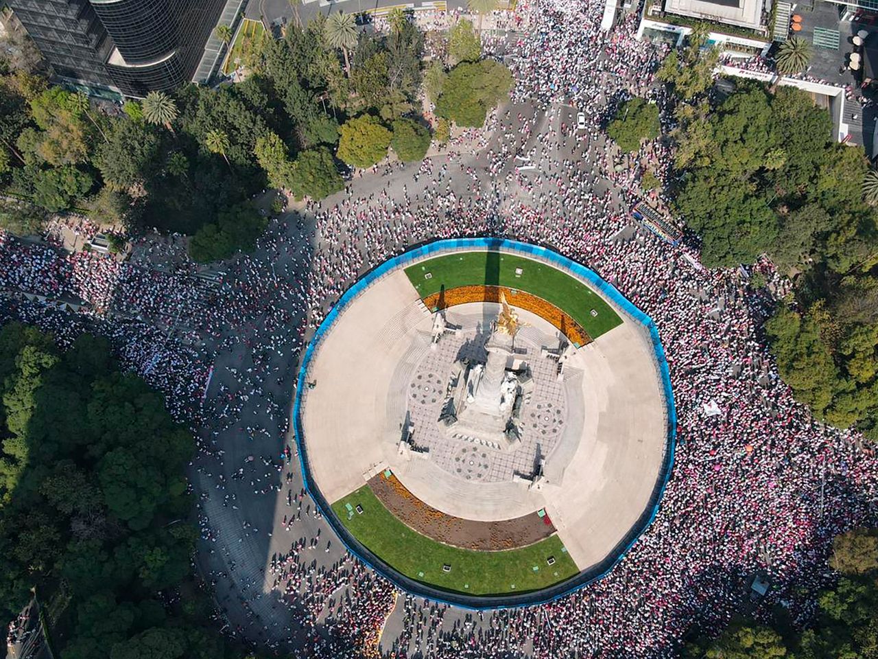 示威者走上二十多個城市的街頭,揮舞着旗幟,戴着和穿着墨西哥負責組織選舉的自治機構標誌性的粉色帽子和T恤。他們高呼口號,捍衞國家選舉委員會(INE)。