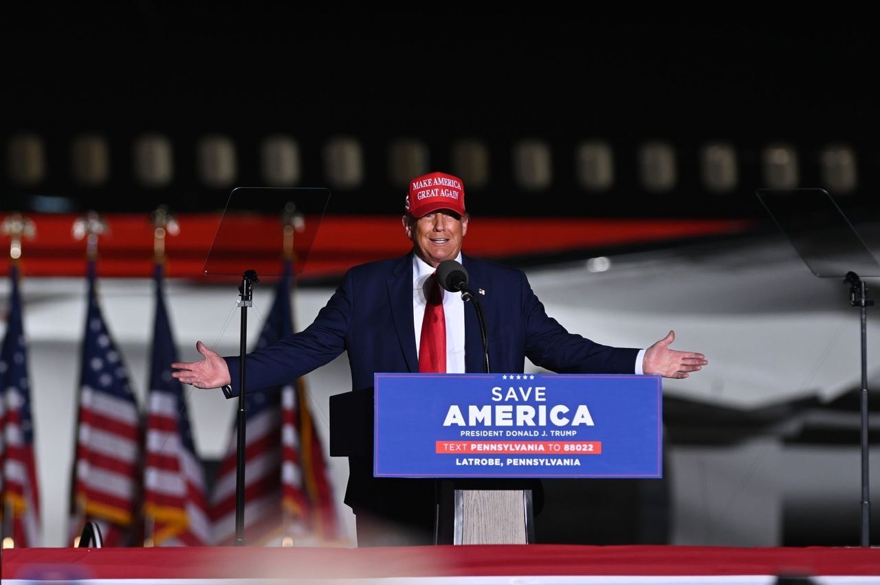 前總統唐納德·特朗普於11月5日在賓夕法尼亞州拉特羅布向人羣發表講話。照片:達斯汀·弗蘭茲/彭博新聞刊登於2022年11月15日印刷版,標題為《唐納德·特朗普2024年大選前瞻》。