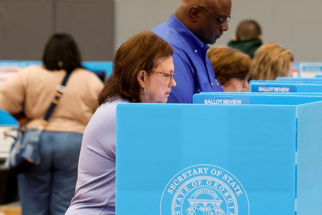 11月8日,佐治亞州諾克羅斯的選民。照片:喬納森·恩斯特/路透社刊登於2022年11月16日印刷版,標題為《中期選舉中少數族裔對共和黨的支持再次上升》。