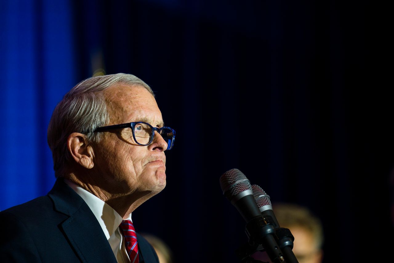 俄亥俄州州長邁克·德温不願直接批評唐納德·特朗普導致共和黨中期選舉表現不佳。照片:金塔克·漢/祖瑪通訊社俄亥俄州州長邁克·德温上週以近26個百分點的優勢贏得連任,當被問及特朗普先生對共和黨整體表現不佳的責任時,他的批評較為含蓄。