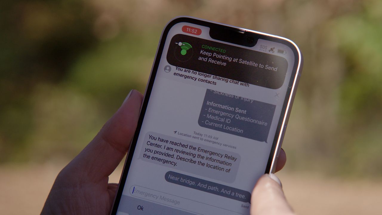 信息發送至何處取決於您所在的位置。如果當地救援機構無法接收短信,信息將轉至蘋果中繼中心,工作人員會聯繫當地救援部門共享您的信息併為您提供幫助。無論哪種情況,調度員都可能通過短信詢問更多問題。我的調度員就要求我提供更詳細的位置信息。“靠近一座橋。還有一條小路。和一棵樹,“我在聊天框中輸入道。通過衞星連接發送這條信息大約需要15秒。蘋果建議保持信息簡短,從而減少需要傳輸的數據量。