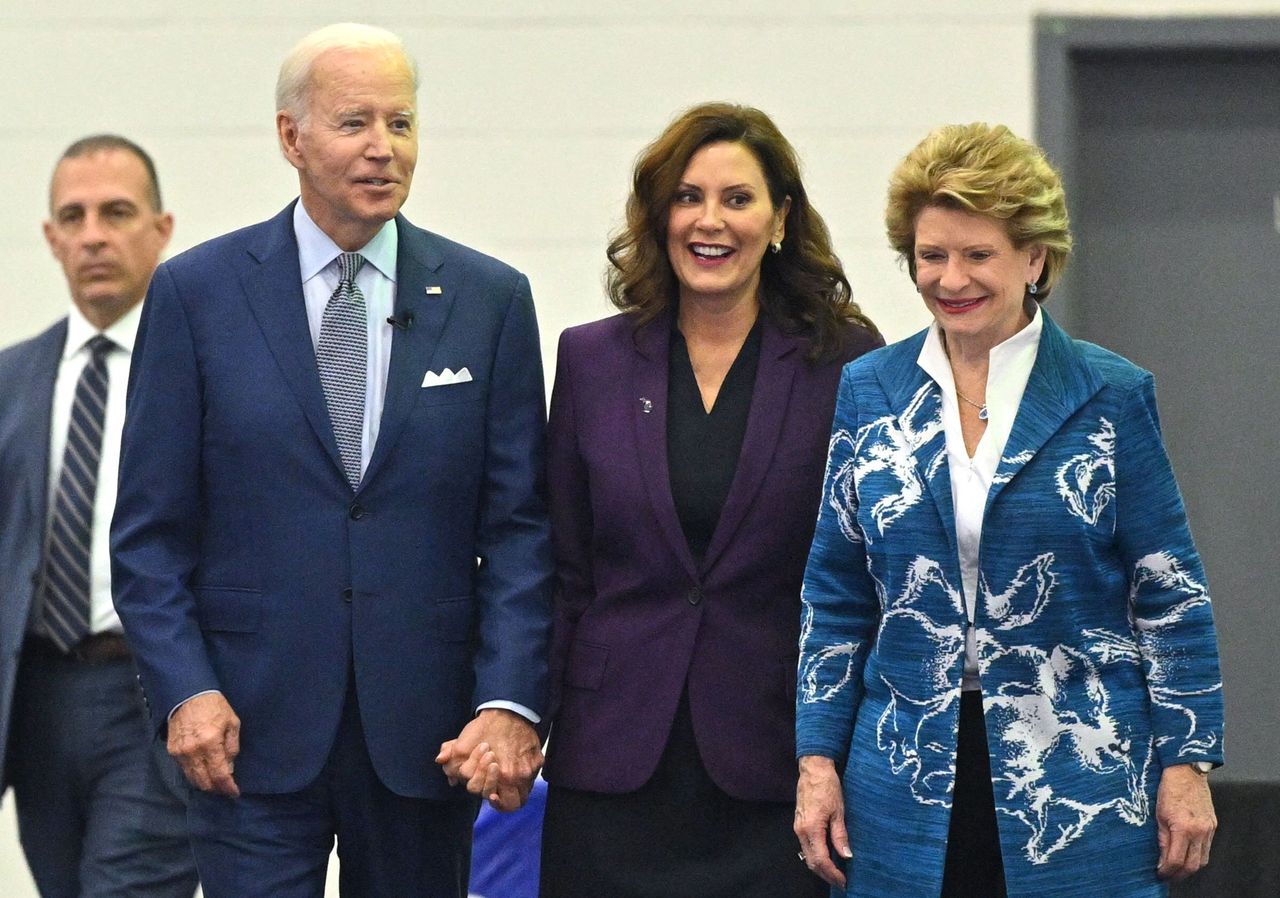 2022年9月,美國總統喬·拜登與密歇根州州長格雷琴·惠特默(民主黨)手挽手,與密歇根州參議員黛比·斯塔貝諾(民主黨)一同走進底特律北美國際車展。圖片來源:曼德爾·南安/法新社/蓋蒂圖片社2022年大選日剛過一週多,總統喬·拜登似乎已在為2024年民主黨總統提名掃清潛在競爭對手的障礙。選民們或許對此並不滿意,但白宮看到一位實力強勁的潛在候選人似乎已排除參選總統的可能性,想必欣喜不已。