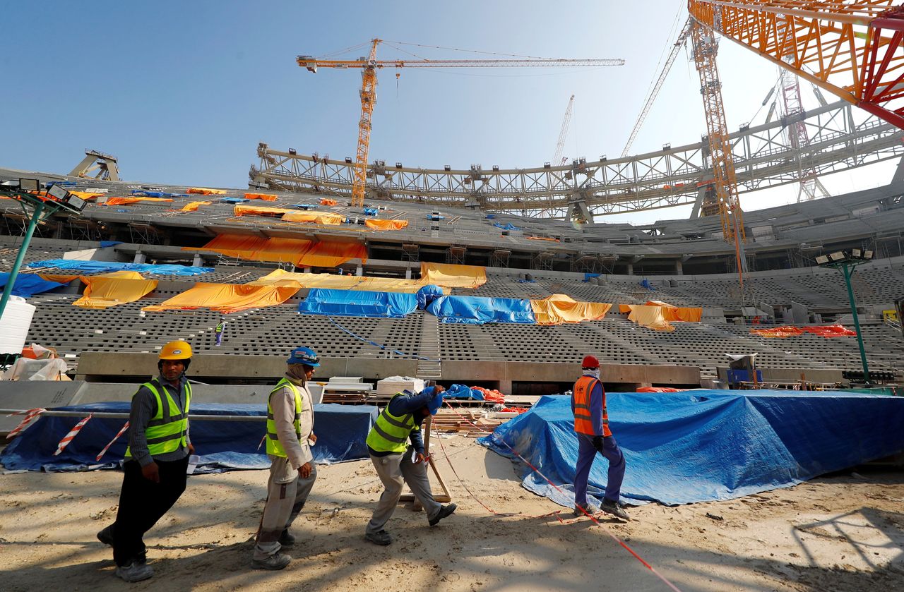 建設中的盧賽爾體育場內景。圖片來源:kai pfaffenbach/Reuters這是因為足球賽程很快將成為2022年世界盃最微不足道的問題。隨着卡塔爾國際形象的提升,這個酋長國首次面臨全球範圍的嚴格審視。焦點集中在兩大爭議:將同性戀定為非法的社會保守政策,以及對待場館建設外籍勞工的方式。與其他海灣國家類似,卡塔爾2200億美元的國家建設項目依賴外籍勞工,人權組織指出這些工人普遍面臨低薪、超時工作和惡劣環境中居住的問題。