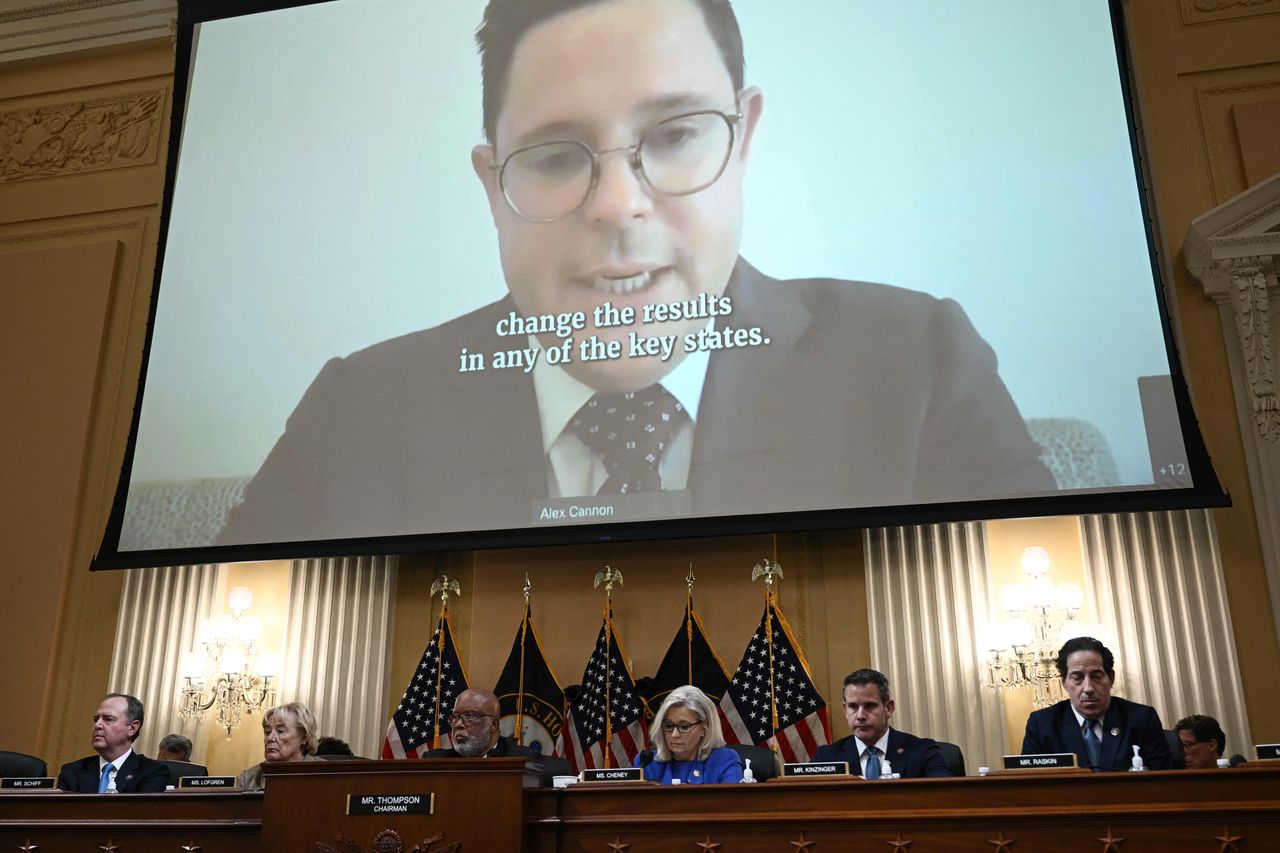 亞歷克斯·坎農6月出席眾議院特別委員會調查1月6日國會山騷亂聽證會的畫面。圖片來源:布倫丹·斯米亞洛夫斯基/法新社/蓋蒂圖片社特朗普的其他律師仍在堅持主張海湖莊園大部分文件屬於私人性質,包括週一公開的關於被扣押文件的法庭文件中。
