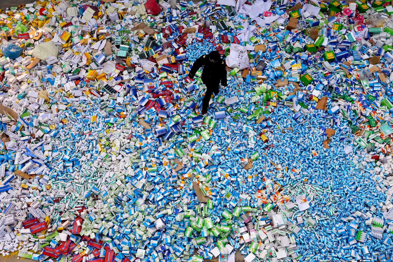 2013年3月,一名中國警察走過北京查獲的成堆假冒藥品。圖片來源:Getty Images但仿製行為不僅限於計算機技術。到2001年,中國已充斥着假藥和盜版好萊塢電影DVD。中國當年加入世界貿易組織(WTO)引發了仿製熱潮,為此付出代價的消費者寥寥無幾:電水壺爆炸、剎車片失靈。香料含石蠟、麪條使用致癌紅色染料、米酒用廉價工業酒精勾兑。2007年,政府估計其檢查的五分之一食品和消費品不達標或被污染。