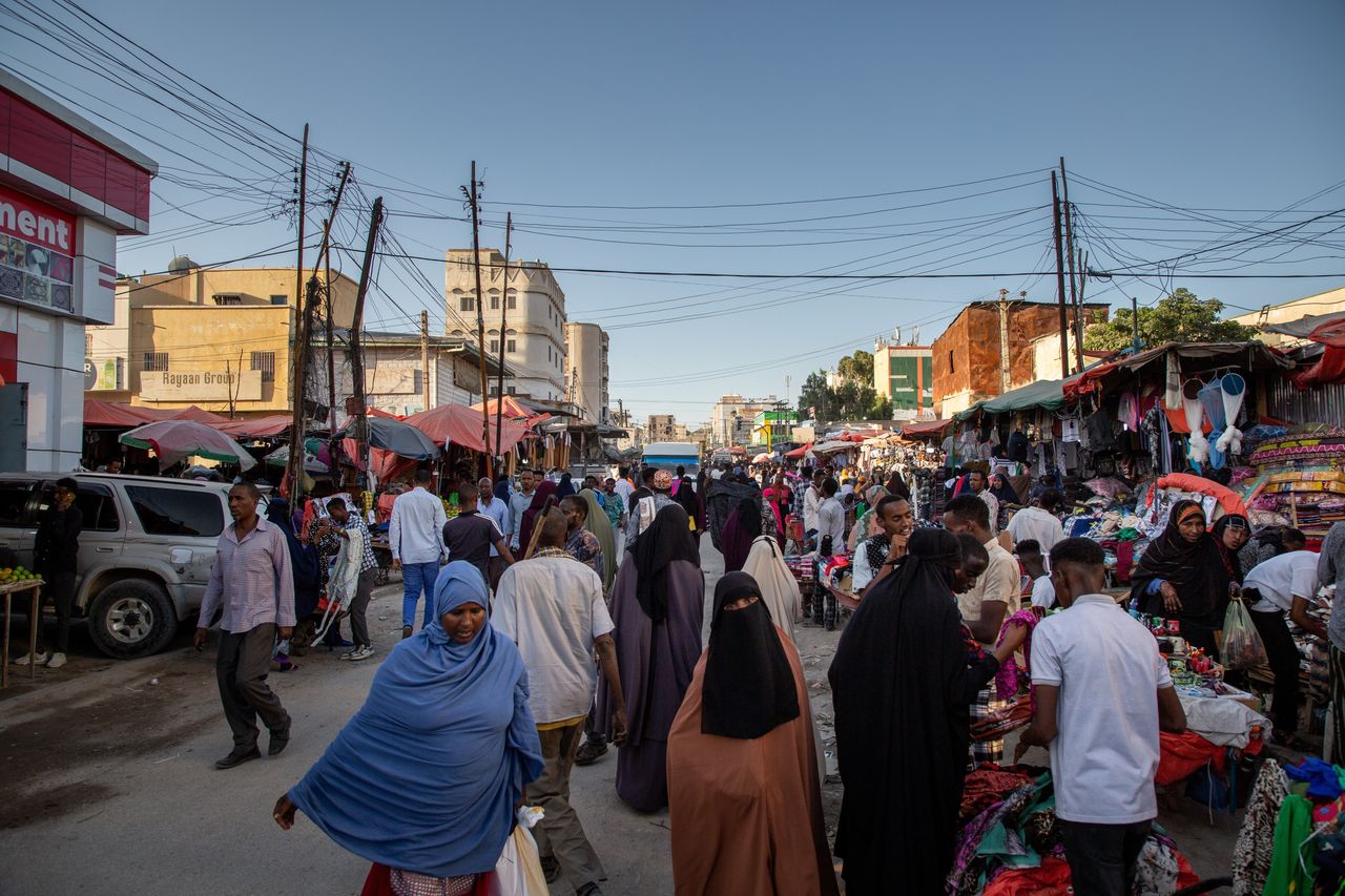 哈爾格薩的一處市場。穆罕默德對錶弟缺乏抱負感到沮喪,他總把下午時光和收入浪費在咀嚼阿拉伯茶上——這種令人上癮的興奮劑在非洲之角地區廣泛流行。“這是個壞習慣,“穆赫塔爾不好意思地説。
