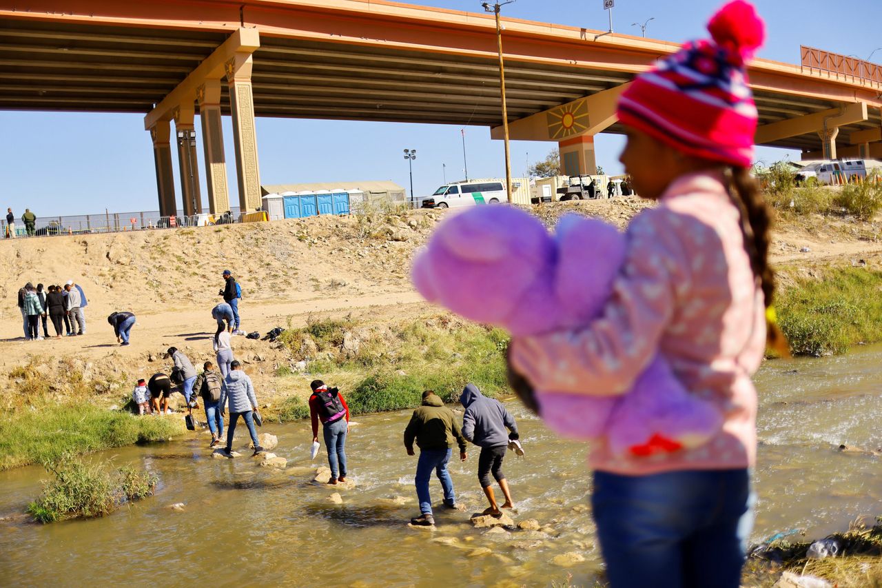 來自委內瑞拉的尋求庇護移民穿越布拉沃河,向美國邊境巡邏隊自首,申請在德克薩斯州埃爾帕索的庇護,11月17日。照片:JOSE LUIS GONZALEZ/路透社刊登於2022年11月19日印刷版,標題為《拜登失去最後一道防線》。