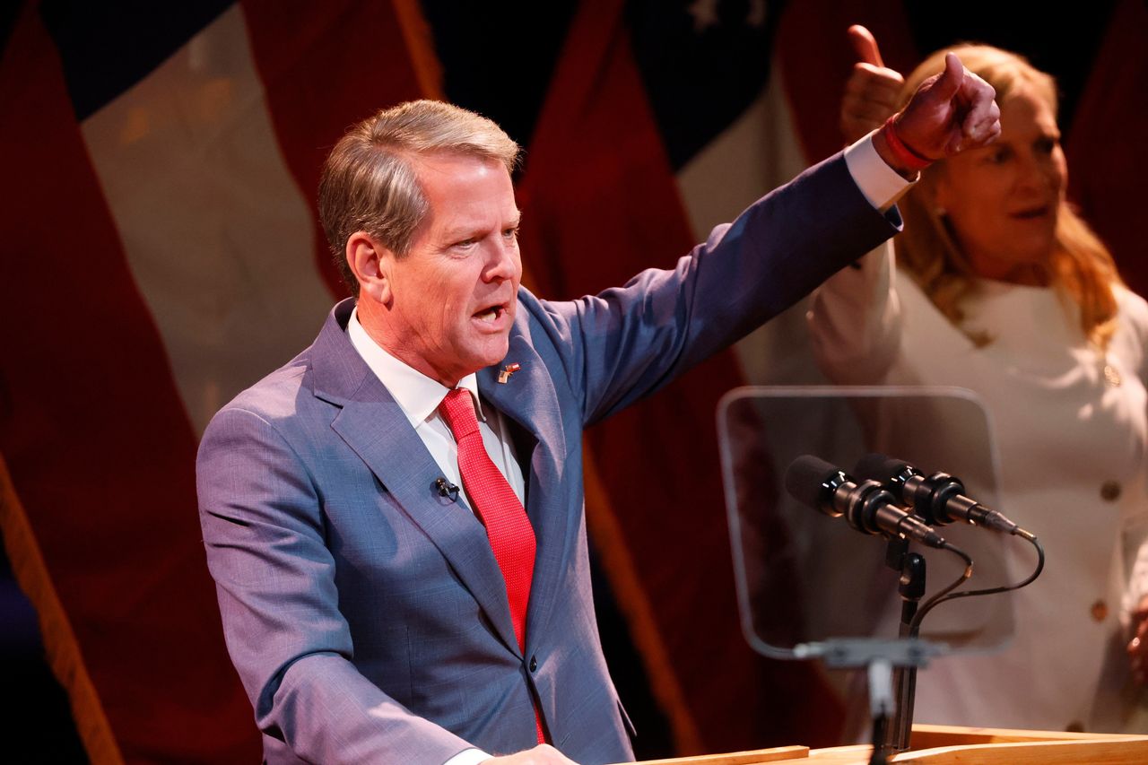 佐治亞州州長布萊恩·坎普11月8日在亞特蘭大向支持者發表講話。圖片來源:Jason Getz/The Atlanta Journal-Constitution/Zuma Press刊登於2022年11月22日印刷版,標題為《布萊恩·坎普是共和黨2024年最佳選擇》。