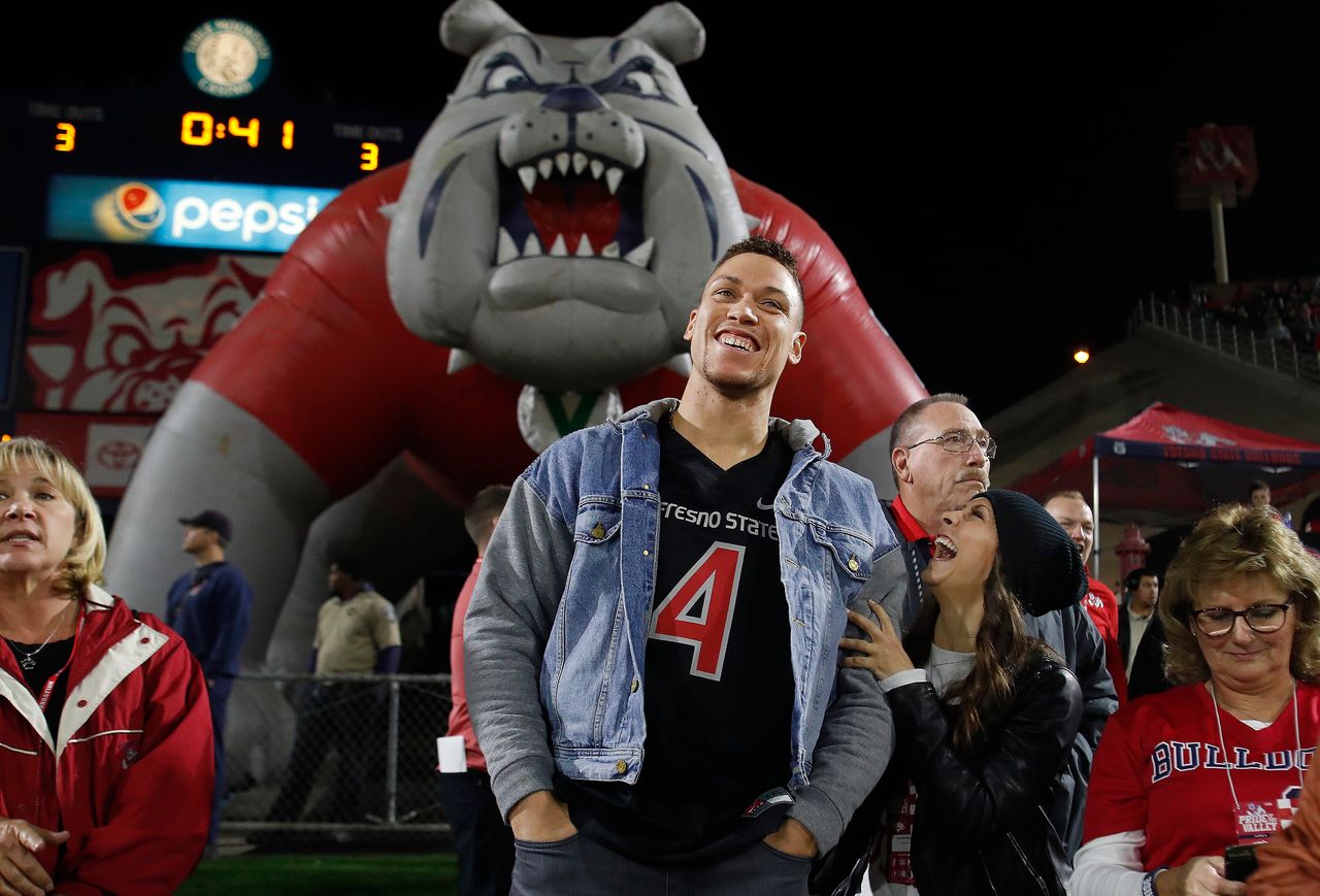 阿隆·賈奇曾是弗雷斯諾州立大學棒球隊球員。圖片來源:Gary Kazanjian/美聯社巨人隊棒球運營總裁法爾漢·扎迪本月早些時候表示,俱樂部老闆並未給他"必須簽下明星球員安撫球迷"的指令——無論如何,巨人隊也只能掌控談判中的一方。他指出,當球隊成為季後賽競爭者時球迷參與度最高,而2023年及以後的俱樂部預算將允許他引進頂級市場球星。