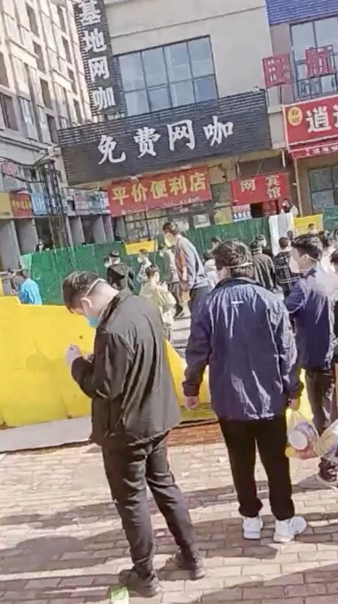 在週三黎明前富士康廠區的一段直播視頻中,當工人們看到宿舍樓大門附近消防水柱噴向火場時,高喊“維護你們的權利!”。人羣朝模糊的藍紅警燈方向投擲不明物體,稱對方是防暴警察。這段視頻在快手平台吸引逾2.2萬人觀看後被中斷。