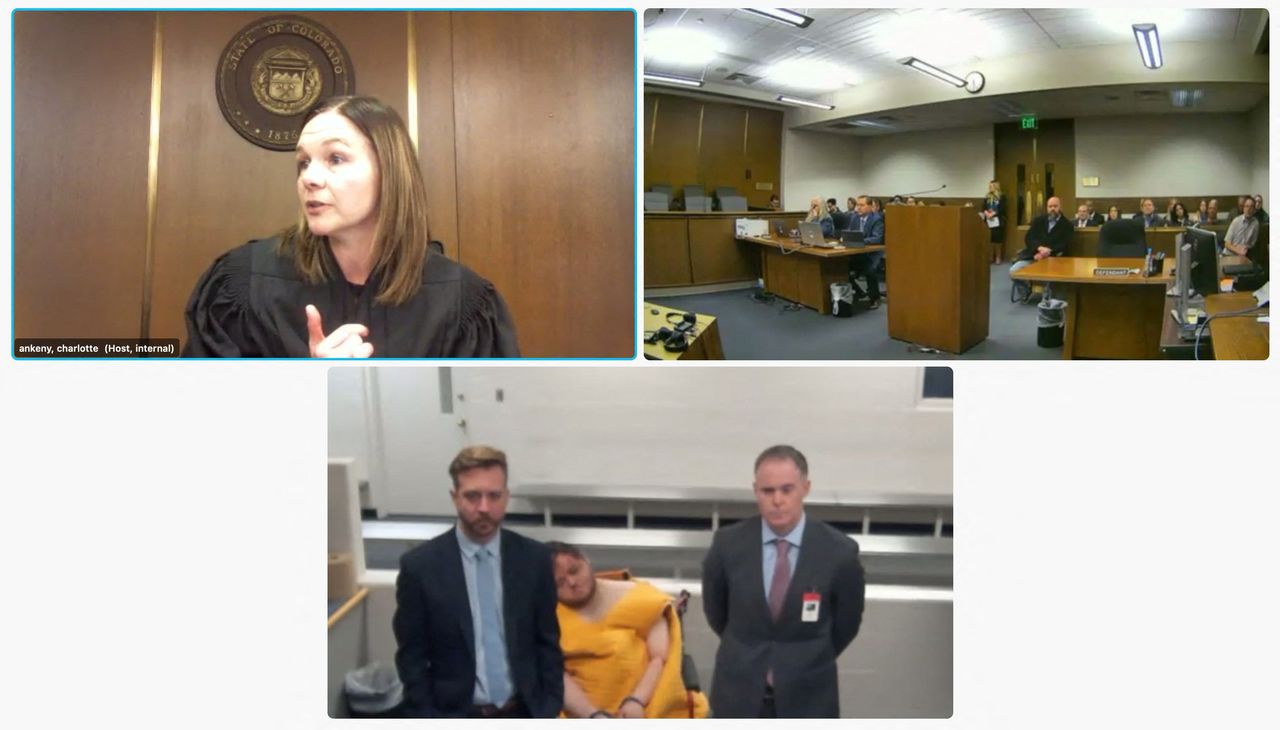 槍擊案嫌疑人安德森·李·奧爾德里奇(穿黃色衣服者)週三在科羅拉多州與兩名律師一同出庭。圖片來源:埃爾帕索縣法院/路透社為奧爾德里奇辯護的科羅拉多州公設辯護人辦公室未回應置評請求。