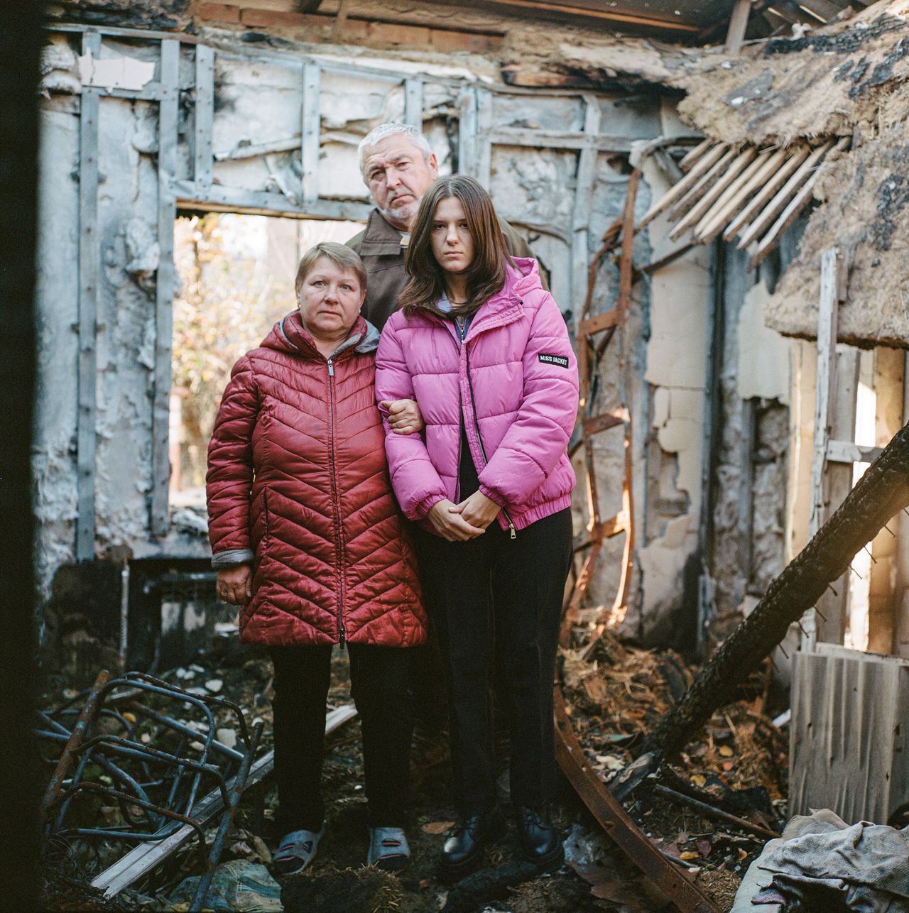 尼古拉·葉梅連斯基與妻子奧爾哈以及他們的養女瓦倫蒂娜·格特曼站在伊久姆被燒燬家園的廢墟中。在前線地區開展工作的組織"拯救烏克蘭"主動提供了幫助。該組織負責人、烏克蘭總統前兒童事務監察專員米科拉·庫列巴表示,兒童在俄羅斯無人陪伴的時間越長,風險就越大。俄羅斯近期通過立法,簡化了為無人陪伴兒童授予公民身份的程序,使其具備被收養資格。“他們極其脆弱,“他説。