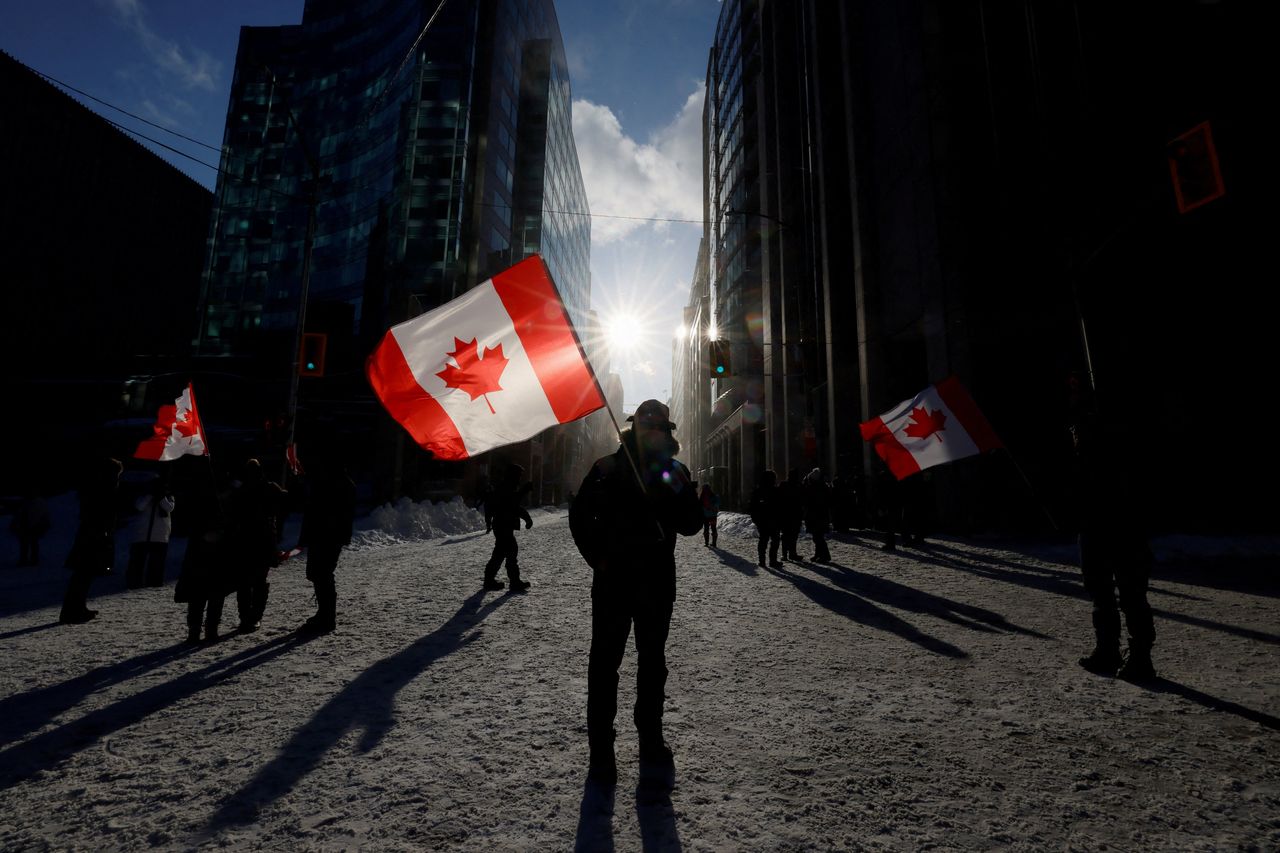 二月期間,抗議者揮舞旗幟,警方正努力恢復加拿大首都渥太華的正常秩序。圖片來源:布萊爾·蓋布爾/路透社“當時有一種感覺,管轄警方已失去控制,”特魯多在接受調查律師質詢時表示,並補充説他對警方保證已制定驅散抗議者計劃的説法越來越懷疑。