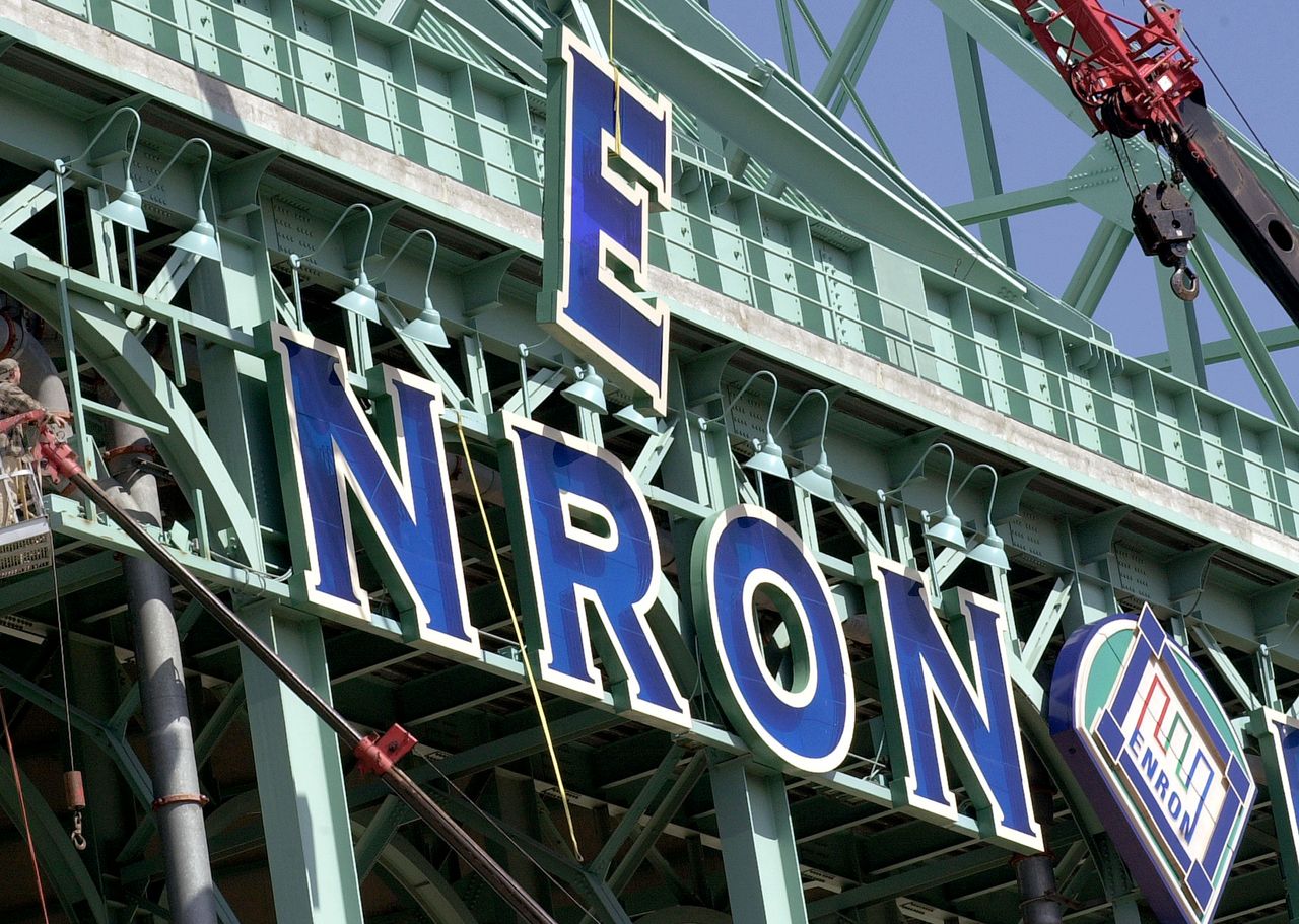 2001年能源巨頭安然倒閉後,其名稱從休斯頓太空人隊棒球場被移除。圖片來源:BRETT COOMER/ASSOCIATED PRESS這是一場贊助狂潮的開端,FTX的柱狀圖標誌出現在潛在客户能看到的地方:一級方程式賽車、NBA球場地板、電子競技賽事、國際象棋比賽。美國職業棒球大聯盟裁判的制服上也縫有FTX的徽章。