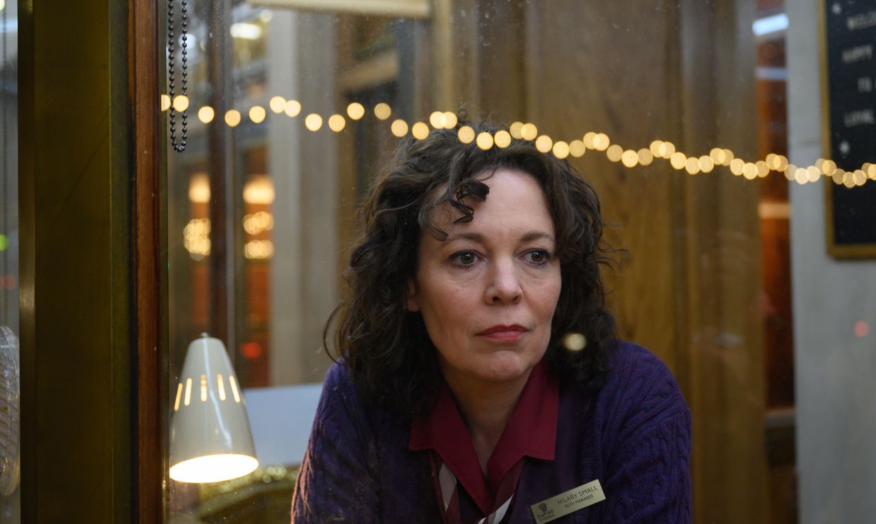 兩個主題的交匯點是"帝國影院"(片名生硬的隱喻由此而來)。故事始於1980年末,這座曾擁有四個放映廳、提供餐飲舞會及英倫南岸絕佳觀景台的豪華影院,如今只剩兩塊銀幕,漸顯破敗。員工們同樣萎靡不振:刻薄的經理唐納德·埃利斯(科林·費爾斯飾)與其可憐巴巴的副手——主要工作只是賣零食的"值班經理"希拉里·斯莫(門德斯編劇直白命名的典型)。奧斯卡得主奧利維婭·科爾曼以演繹猶疑不安見長,完美駕馭了這個角色,但貴族氣質的費爾斯出演她那位猥瑣上司實在過於英俊。若由託比·瓊斯這類相貌普通的演員(他在片中飾演心懷隱痛的放映師)出演會更合適。
