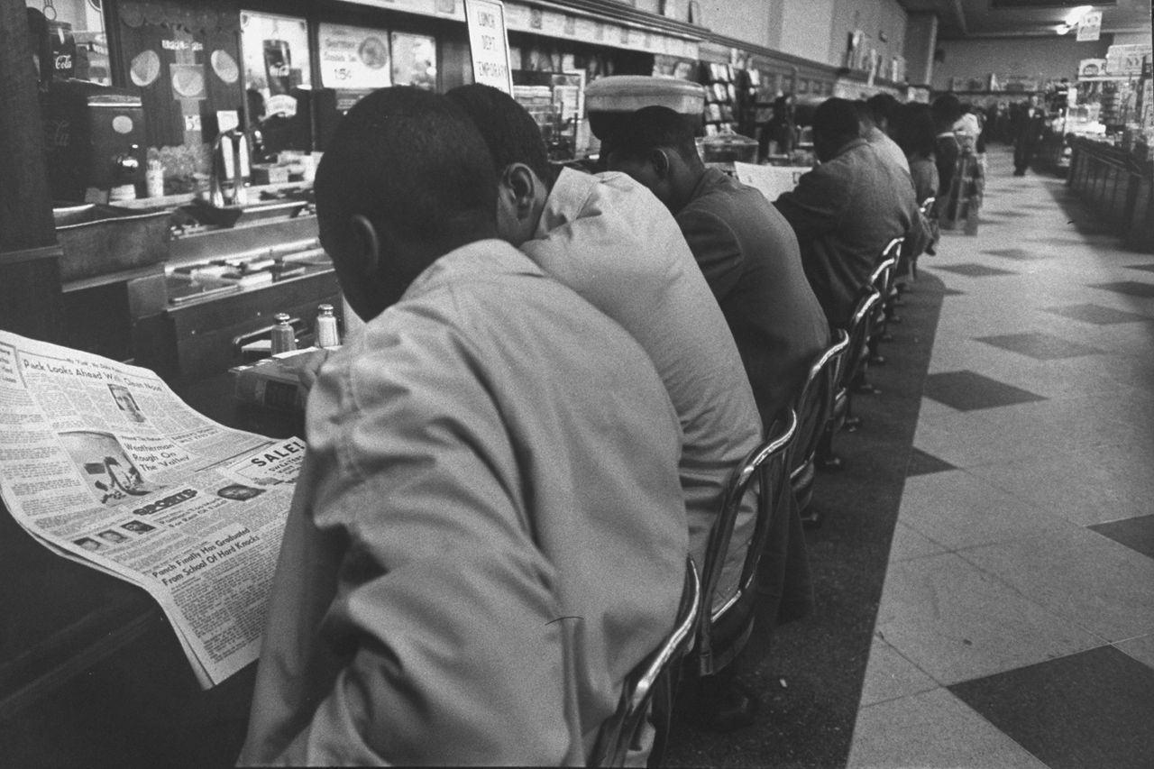 伍爾沃斯午餐櫃枱靜坐的照片拍攝於1960年的北卡羅來納州。本文早期版本配圖説明稱拍攝地點為北卡羅來納州達勒姆市。(已於12月14日更正)