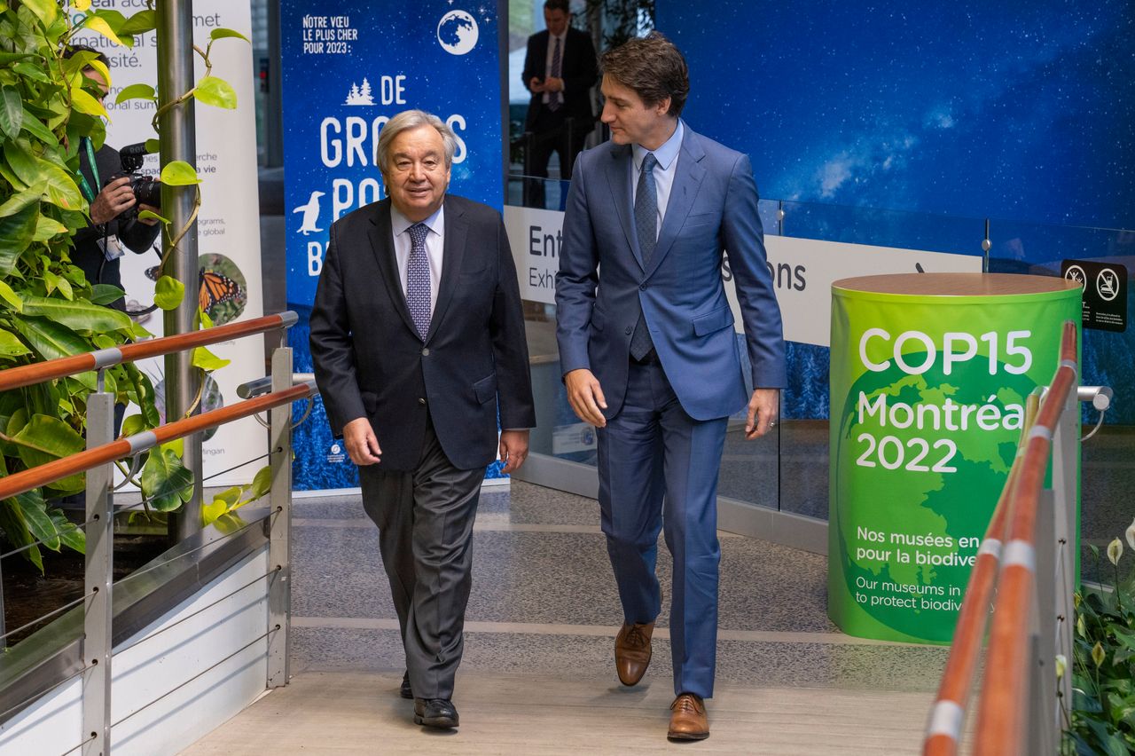 加拿大總理賈斯汀·特魯多(右)在蒙特利爾會見聯合國秘書長安東尼奧·古特雷斯,聯合國生物多樣性大會(又稱COP15)於週三開幕。圖片來源:保羅·奇森/美聯社正在蒙特利爾舉行的聯合國生物多樣性峯會的與會者希望達成一項協議,通過推動各國和企業儘量減少對環境的影響來幫助保護自然。