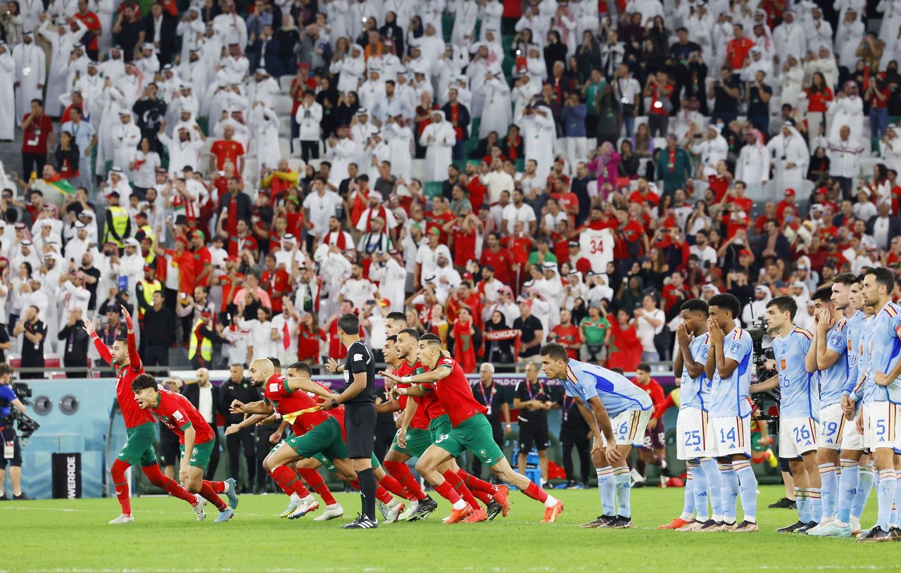摩洛哥隊在世界盃16強賽中震驚了西班牙隊。圖片來源:共同社/Zuma Press