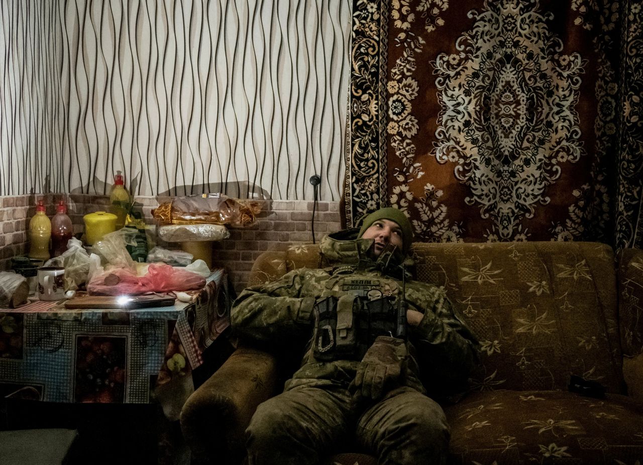 一名烏克蘭士兵在頓巴斯城市利曼附近的前線休息。圖片來源:STRINGER/REUTERS