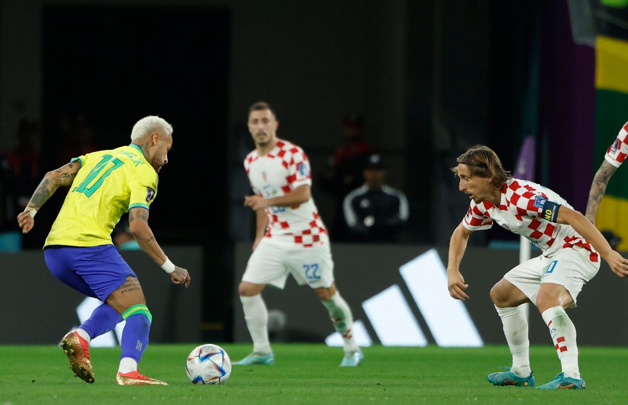 莫德里奇防守內馬爾。圖片來源:胡安霍·馬丁/祖馬通訊社這種常規操作還讓克羅地亞能掌控比賽節奏,時而突然提速,時而將節奏放緩至近乎散步。這同樣是精心設計的戰術。通過收放自如的節奏變化,克羅地亞球員得以保存體力——考慮到他們有多少比賽會演變成馬拉松,這至關重要。該國過去九場大賽淘汰賽中有八場拖入加時,每場都額外消耗30分鐘體能。