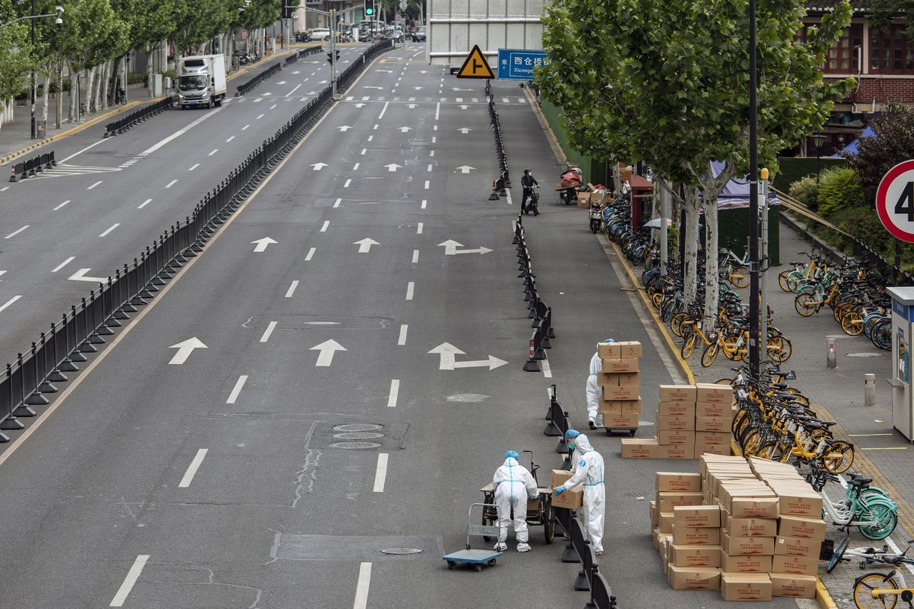 5月上海疫情封控期間,身穿防護服的工作人員在近乎空蕩的街道搬運食品箱。近期全國範圍的抗議和經濟動盪促使政府取消了大部分核酸檢測和隔離要求。圖片來源:彭博新聞社### 迴音室效應
