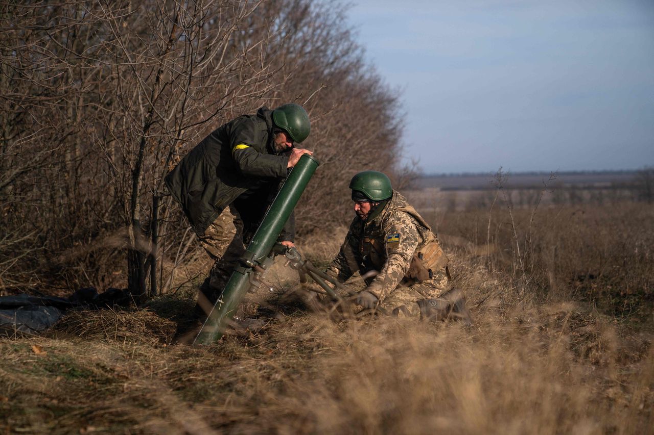 12月9日,烏克蘭士兵在頓涅茨克地區前線發射迫擊炮。照片:ihor tkachov/法新社/Getty Images刊登於2022年12月14日印刷版,標題為《西方必須幫助烏克蘭比俄羅斯堅持更久》。