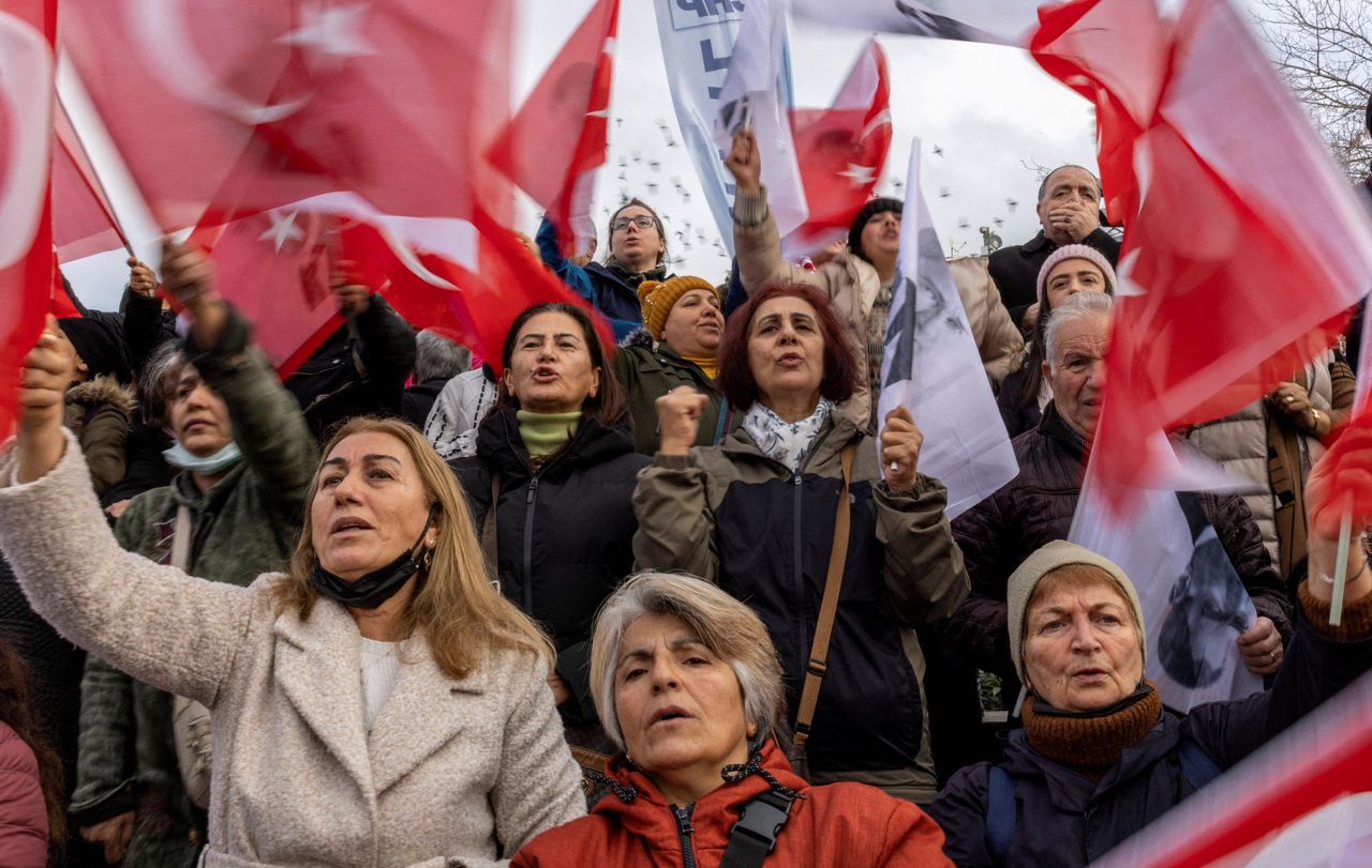 伊斯坦布爾市長埃克雷姆·伊馬姆奧盧的支持者週三在該市舉行示威。路透社/烏米特·貝克塔斯伊斯坦布爾——土耳其一家法院週三裁定伊斯坦布爾市長"侮辱公職人員"罪名成立,判處其兩年以上監禁,這對總統雷傑普·塔伊普·埃爾多安的一位受歡迎的政治對手構成打擊,埃爾多安明年將面臨一場艱難的連任競選。塔伊普·埃爾多安。