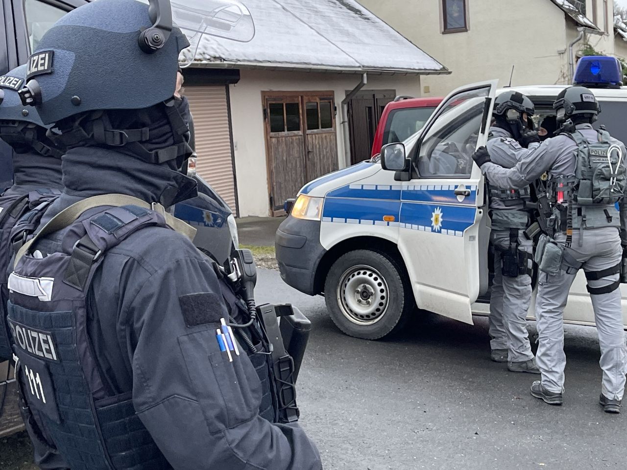 德國安全部隊上週在一次行動中進行了清晨突襲,以搗毀一個疑似恐怖組織。圖片來源:fricke/Agence France-Presse/Getty Images官員稱,這位親王將其位於德國東部圖林根州的小型城堡式別墅作為陰謀者的集會地點。