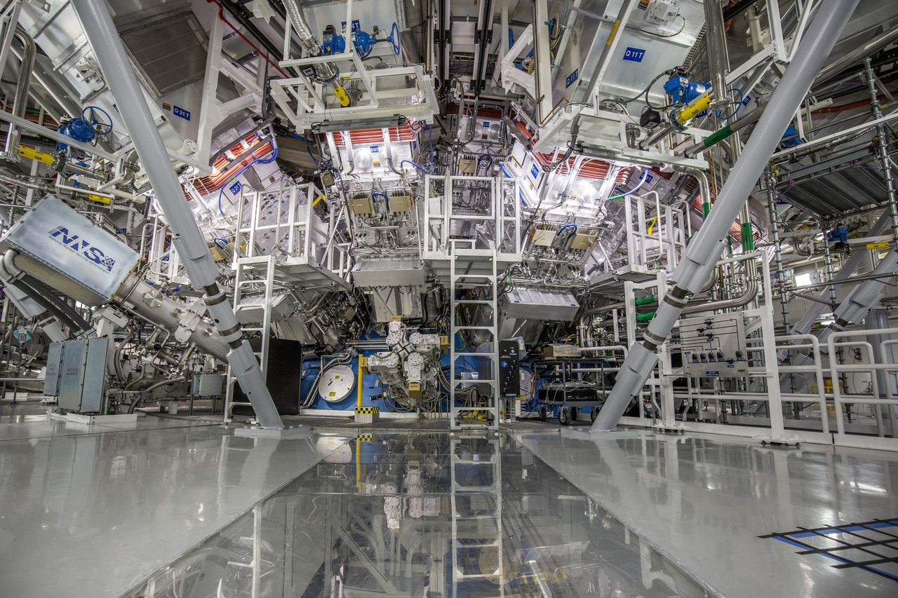 該設施的靶艙中,192束激光輸送能量實現了核聚變點火。圖片來源:Cover Images/Zuma Press米歇爾·賓德鮑爾是南加州一家公司的首席執行官,該公司旨在通過核聚變創造近乎無限的能源,這一宏偉目標有時會讓一些潛在投資者覺得過於未來主義。