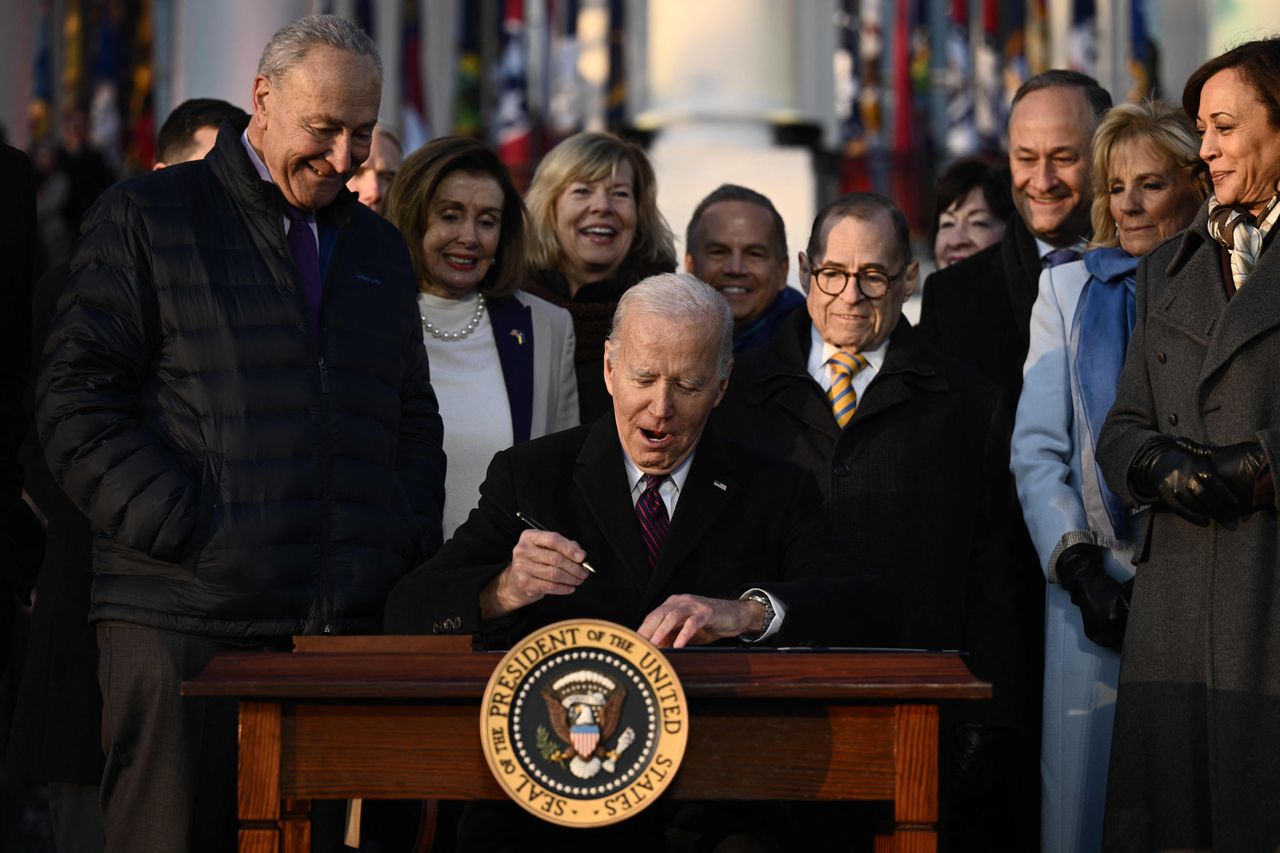 2022年12月13日,喬·拜登總統在白宮簽署《尊重婚姻法案》。圖片來源:布倫丹·斯米亞洛夫斯基/法新社/蓋蒂圖片社刊登於2022年12月16日印刷版,標題為《傳統婚姻獲得些許尊重》。