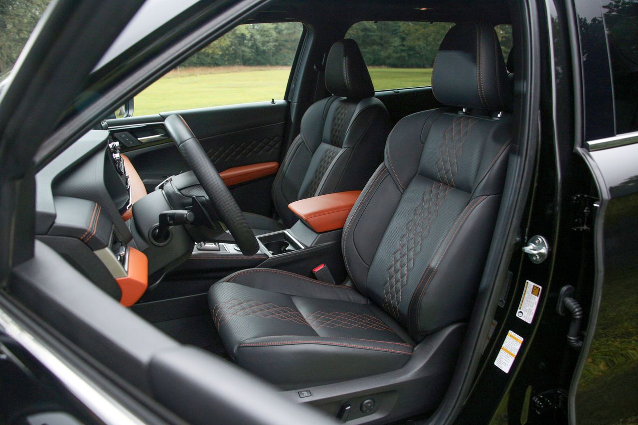 舒適熟悉 歐藍德的內飾在材料和設計上偏向高端。SEL Premium版本帶來了一系列標準豪華配置,包括高級真皮座椅(前排加熱/按摩);加熱後排座椅和方向盤;電動全景天窗和側窗遮陽簾;抬頭顯示器;以及後艙/行李區的1500W交流電源插座。照片:北美三菱汽車插電式混合動力版本仍然保持原樣。它沿用了上一代車型的稀薄燃燒阿特金森循環2.4升四缸發動機,搭配更大的電池(20千瓦時)和更強大的前後牽引電機。前部的第三個電機-發電機負責再生制動。最大綜合輸出現在為248馬力和332磅-英尺,獨立的前後電驅動提供協作全輪驅動。根據實際感受,0到60英里/小時的加速感覺在8秒左右。