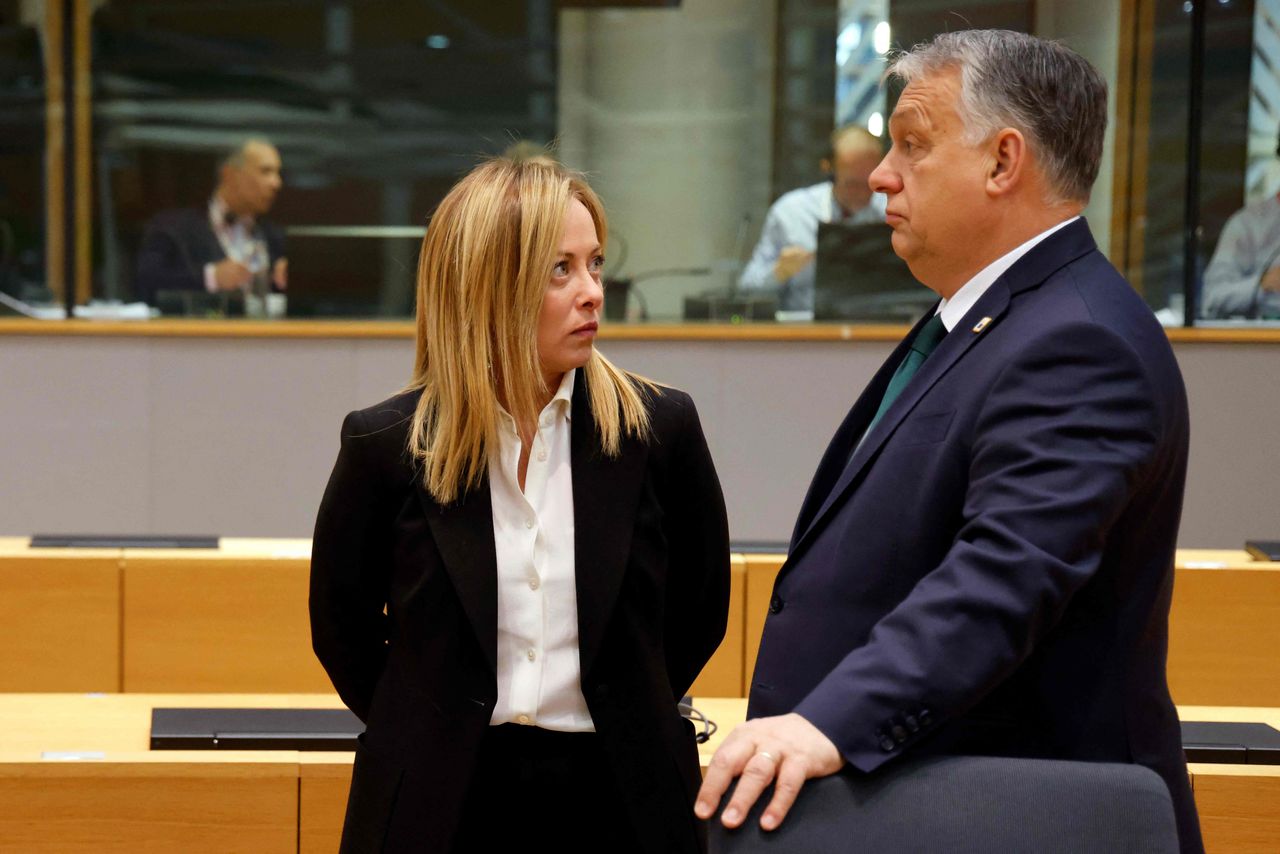 意大利總理喬治婭·梅洛尼與匈牙利總理維克托·歐爾班在週四布魯塞爾歐盟領導人峯會前會面。圖片來源:Ludovic Marin/法新社/蓋蒂圖片社“這就是布魯塞爾法治的模樣,”歐爾班週三在推特上寫道,並附上比利時聯邦警察推文鏈接,該推文宣佈在此次醜聞中查獲近150萬歐元現金。