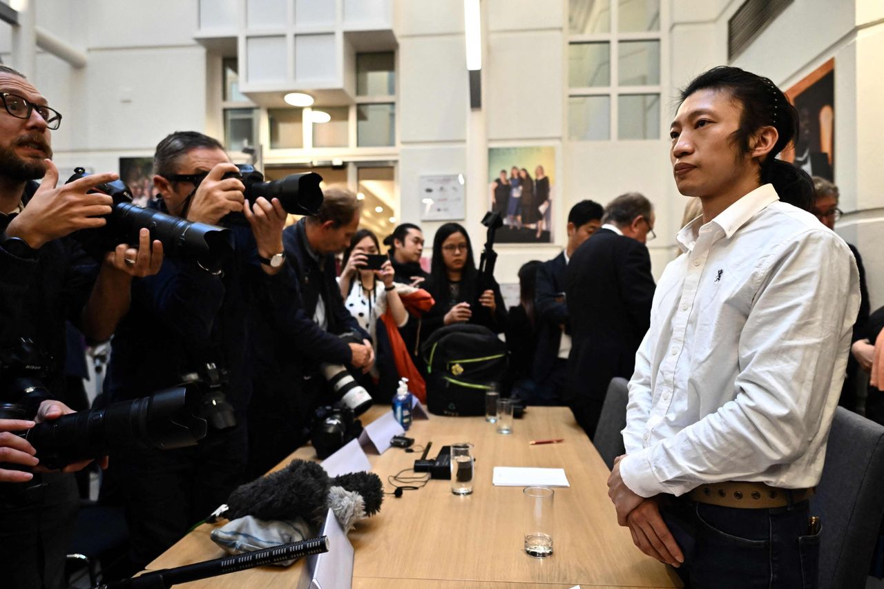 事件中被拖到領事館大門後面的鮑勃·陳(Bob Chan)上個月在倫敦舉行了新聞發佈會。照片:ben stansall/法新社/蓋蒂圖片社寫信給詹姆斯·T·阿雷迪,郵箱:[email protected]