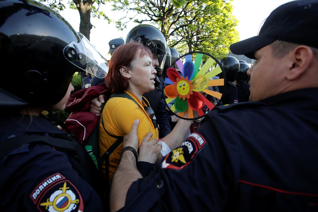 2019年5月17日,聖彼得堡,警察拘留了一名LGBT集會參與者。照片:安東·瓦加諾夫/路透社普京多次哀嘆其解體的蘇聯,曾以馬克思列寧主義的階級鬥爭和社會平等話語為其帝國野心正名。即便在1970至1980年代克里姆林宮精英已不再信仰共產主義意識形態時,這些理念仍被全球數百萬人——西方世界乃至西方前殖民地更甚——表面奉為圭臬。普京面臨的挑戰是為俄羅斯的帝國目標尋找新意識形態。