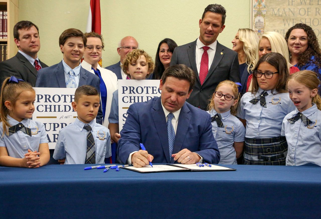 佛羅里達州州長羅恩·德桑蒂斯於3月28日在佛羅里達州謝迪希爾斯簽署《家長教育權利法案》使其成為法律。圖片來源:道格拉斯·R·克利福德/坦帕灣時報/美聯社隨後,州長推動佛羅里達州立法機構通過了一項法案,廢除了允許迪士尼對主題公園所在土地實行自治的特殊税區。