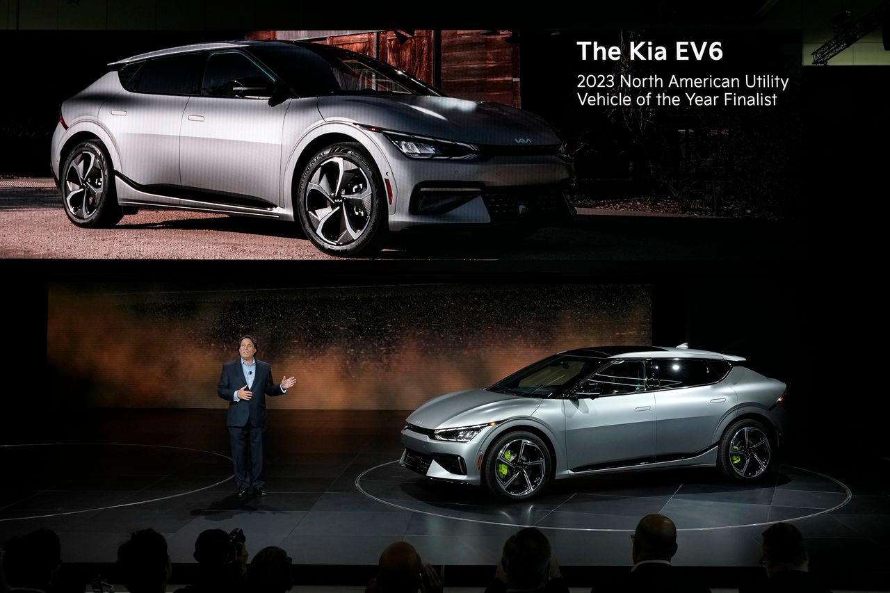 起亞高管表示,美國有限的充電基礎設施意味着像該公司EV6跨界SUV這樣的電動車,在最佳條件下充電速度往往遠低於其潛在能力。圖片來源:Marcio Jose Sanchez/美聯社想象兩輛車進行從奧蘭多到華盛頓特區約860英里的公路旅行。一輛車續航300英里,充滿電約需一小時,這與當前許多快速充電電動車在充電站補充電量的典型時長相當。另一輛車電池容量僅一半,續航150英里,但15分鐘即可充滿。即使算上因更頻繁停靠而上下高速的額外時間,續航減半但充電速度快四倍的車輛仍比其更重更昂貴的對手快約20分鐘。