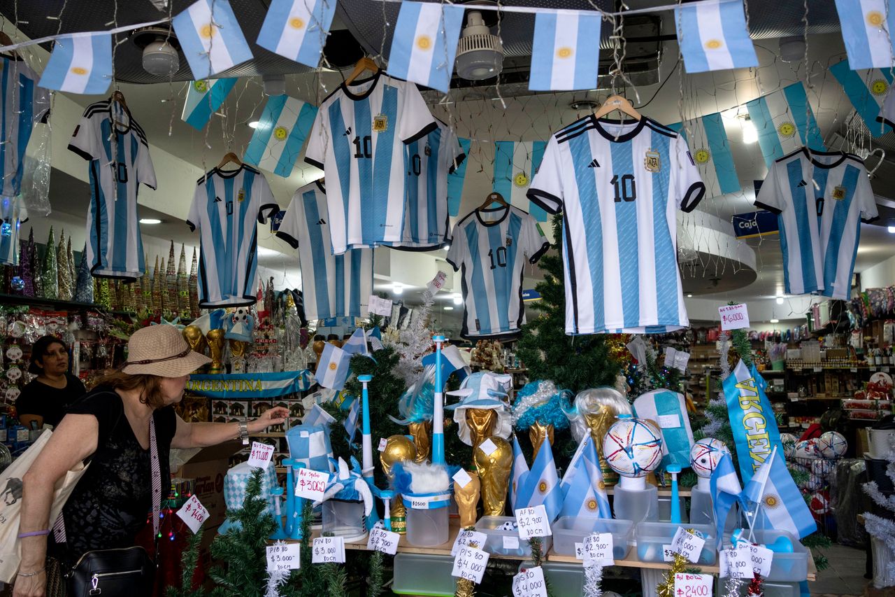 世界盃決賽對陣法國前夕,布宜諾斯艾利斯一家商店正在銷售阿根廷足球隊周邊商品。圖片來源:Rodrigo Abd/Associated Press這場比賽可能平息一場從體育小報到公交站再到探戈酒吧的激烈爭論:誰是有史以來最偉大的阿根廷足球運動員——梅西,還是已故的迭戈·馬拉多納?兩人在球場上的相似之處令人驚歎:身材矮小、速度驚人的進攻手,以穿着10號球衣時左腳的致命威脅聞名。儘管梅西在其二十年歐洲職業俱樂部生涯中積累了更多進球和助攻,但馬拉多納曾為阿根廷捧回一座世界盃冠軍獎盃。