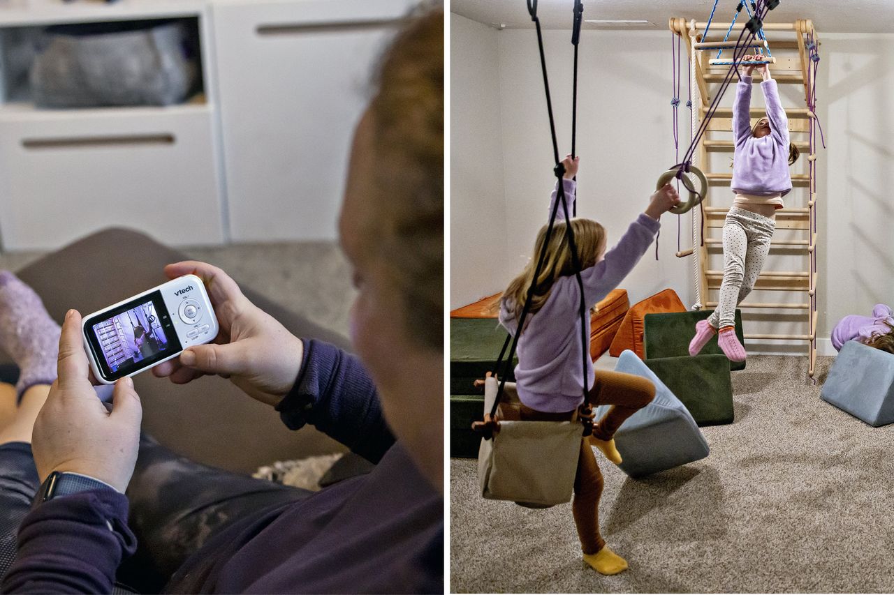 凱瑟琳·史密斯是三個女孩的母親——5歲的雙胞胎和一個8歲的孩子。她監控着她們的卧室和地下室的遊戲室。她説,她想確保雙胞胎不會在攀爬架上受傷,或者在應該睡覺的時候搗亂。她説,她的大女兒知道如果感到不舒服或做噩夢時可以叫父母,感覺更安心。
