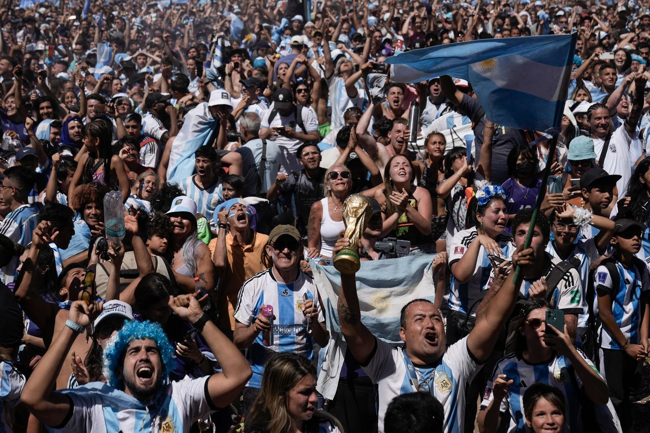 49歲的建築維修工西爾瓦娜·普奇抱着她的小狗——兩者都穿着阿根廷隊球衣——來到西伯廣場觀看比賽。她説,這個長期受苦的國家理應獲得這場勝利。