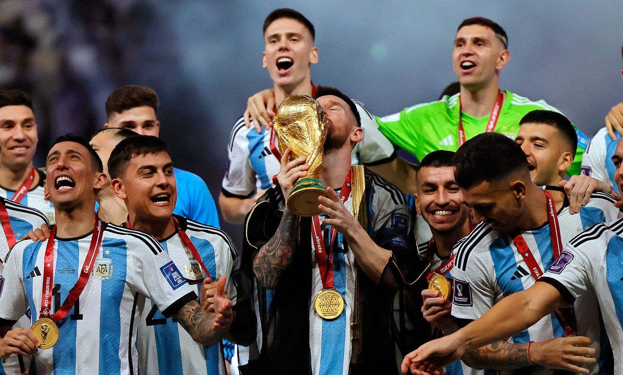 萊昂內爾·梅西親吻獎盃。圖片來源:ronald wittek/Shutterstock看看終場時的反應。面無表情的姆巴佩坐在草皮上,對法國總統埃馬紐埃爾·馬克龍的安慰無動於衷。再看一向內斂的梅西,此刻正放聲高歌。這位年少時便遠赴西班牙的矮個子天才,偶爾會被視為祖國的陌生人。如今他不僅比肩——更可能超越——迭戈·馬拉多納,成為阿根廷的足球英雄。