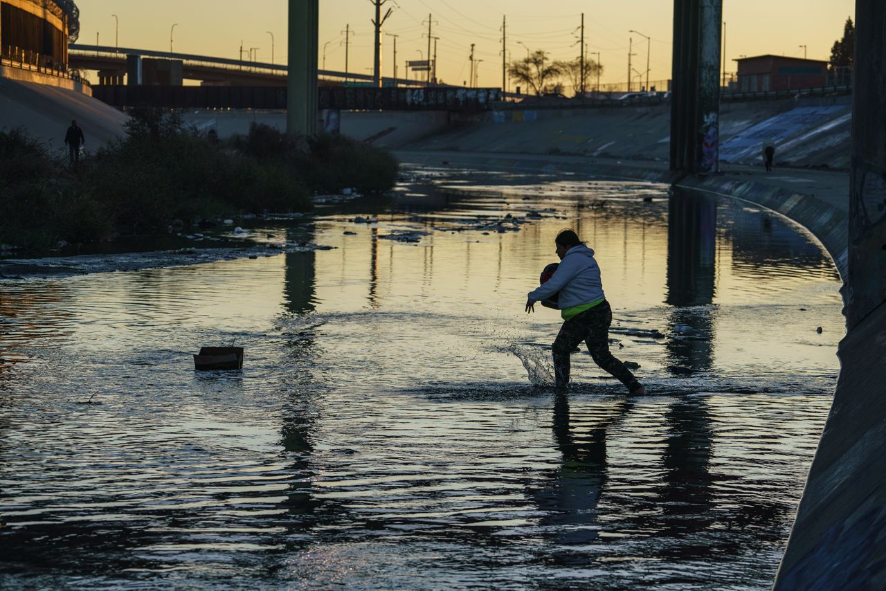 一名婦女正穿越格蘭德河前往德克薩斯州埃爾帕索市,該市正因新一輪移民潮而不堪重負。攝影:《華爾街日報》Paul RatjeAlicia A. Caldwell 與 Andrew Restuccia 對本文亦有貢獻。