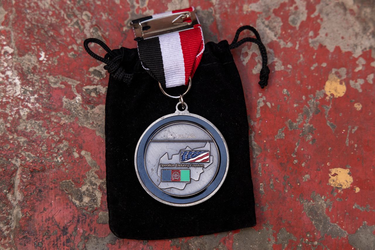 一名特殊移民簽證申請者所獲的“核心任務人員心形獎章”。圖片來源:Paula Bronstein/Getty Images
