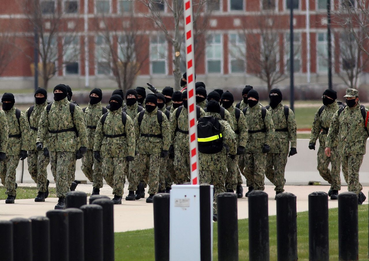 2020年4月14日,伊利諾伊州萊克縣大湖海軍基地的水兵正在進行訓練。圖片來源:Stacey Wescott/Zuma Press本文發表於2022年12月21日印刷版,標題為《中途島上的水兵與無聊作戰》。